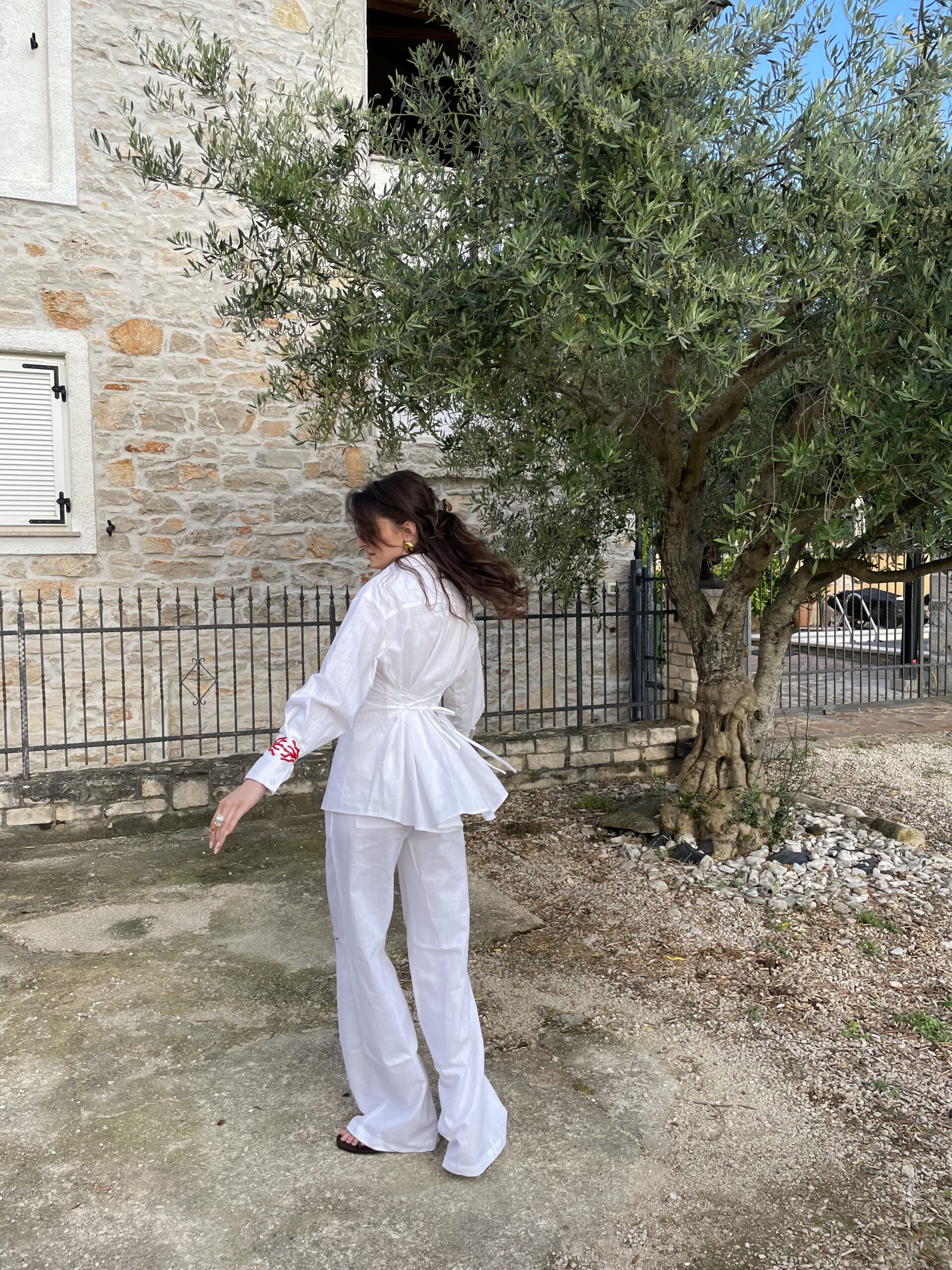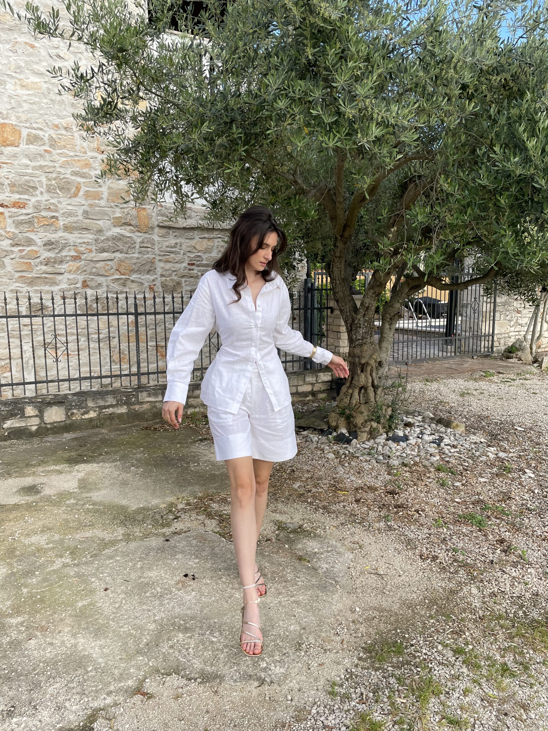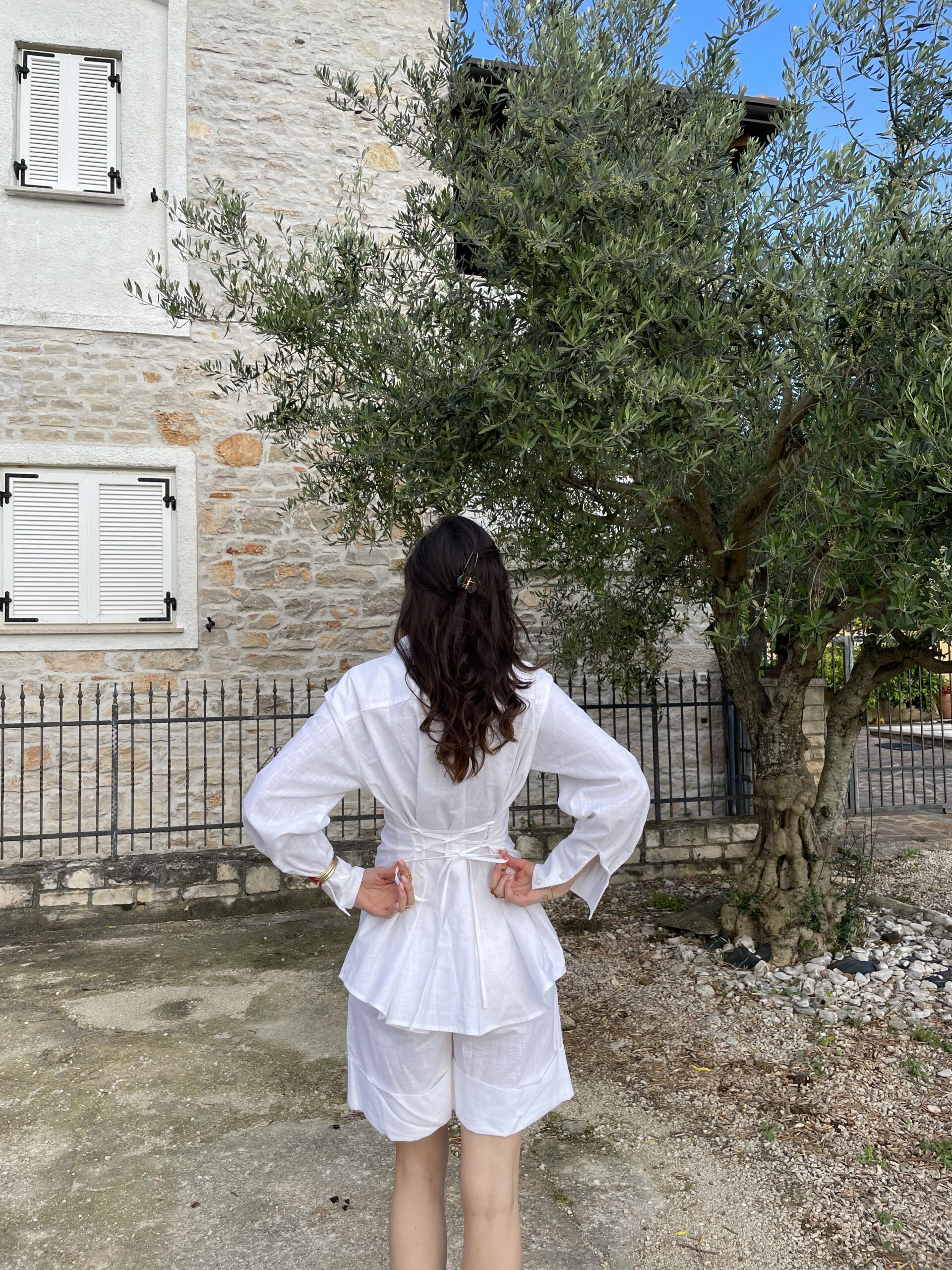 Linen shirt in a slightly oversized cut with a refined corset effect. Clean lines and natural fabric create a balance of comfort and elegance.